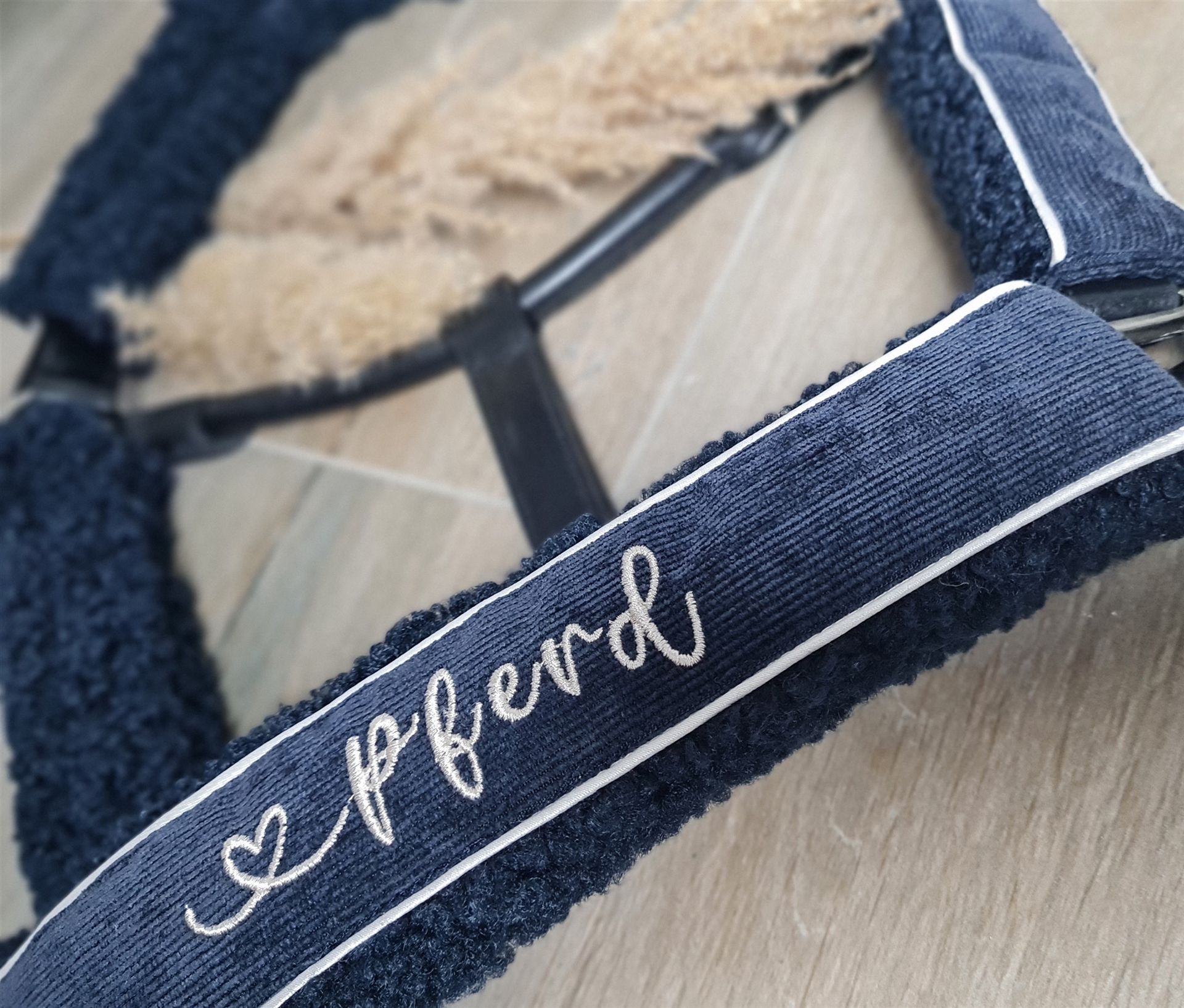 Dieses wunderschöne Set ist ein absoluter Hingucker und macht jedes langweilige Halfter zu einem Blickfang. Das 4er Set besteht aus einem Genickschoner, zwei Backenschonern und einem Nasenschoner. Der Cord befindet sich an allen 4 Schonern und der Nasenschoner kann mit deinem Wunschnamen bestickt werde.